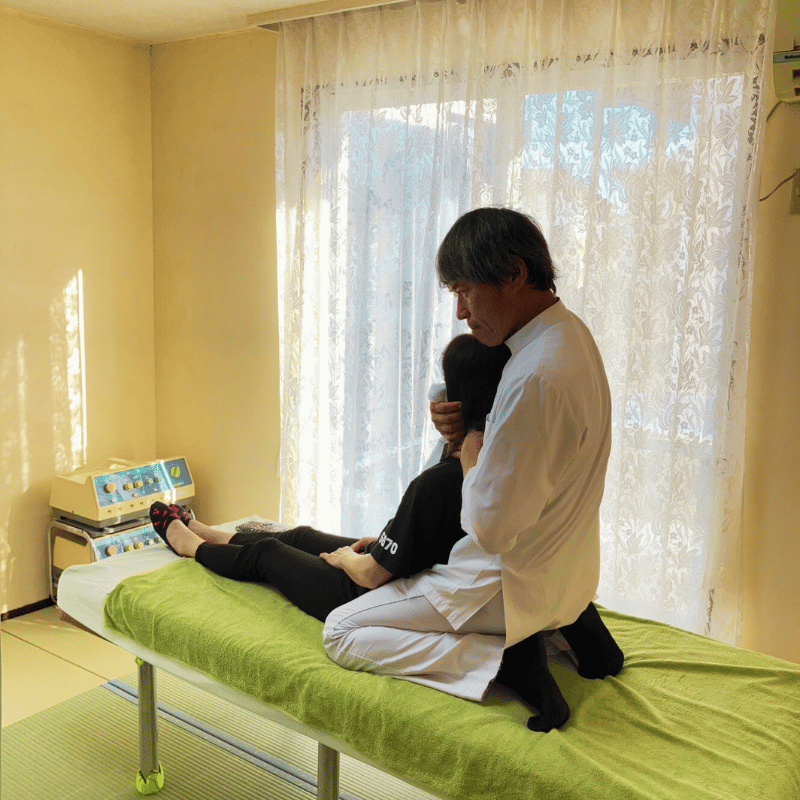 骨を整える前に硬くなった筋肉の血流を良くして柔らかくすると骨の矯正は痛くなくスムーズに治ります。